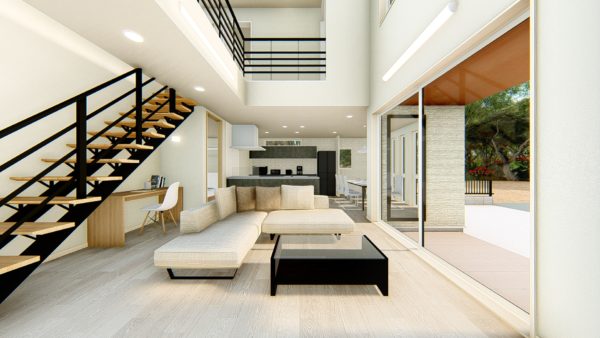 吹き抜けリビング・陽だまりダイニング・タイルデッキ完備!