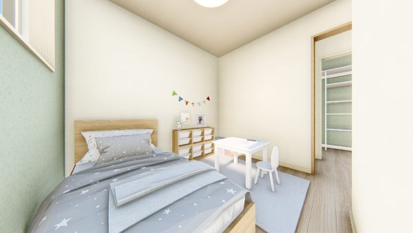 2室並んだ2階の子ども室は、自分らしいお部屋作りが楽しめる完全個室♪中央にそれぞれクローゼットを配置して、音漏れを防ぎ、プライバシーを守れるようにしました🥰