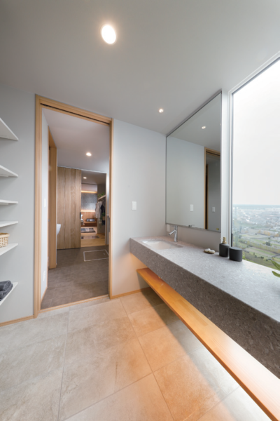 浴室からランドリールームまで、一直線上に配置しています。