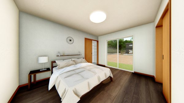 キングサイズのベッドを置いてもゆとりのある7.8帖の主寝室。