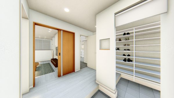 シューズクロークを通過する家族用動線を使い分けできる玄関👏