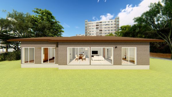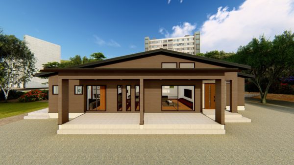 玄関側と裏面からで表情の変わるモダンな外観のロフト付き平屋🏠