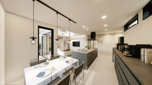 和室やコートテラスとも繋がっており、家族団らんの空間に最適です。