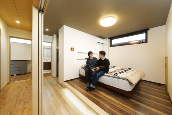 リビング横の主寝室。段差も無く、フラットなので将来的にも安心な設計に☺