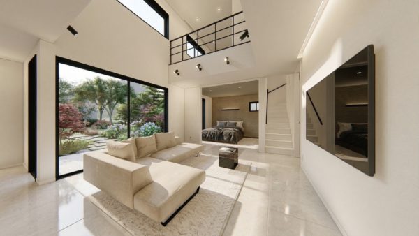 LDKは、22帖超えの大空間に大きな吹き抜けで開放感抜群!