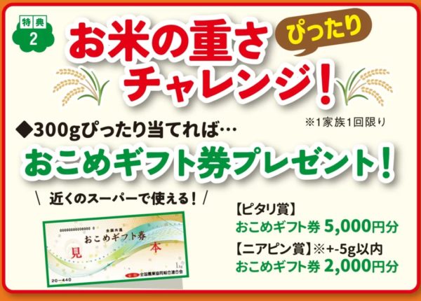 「キッチンカーお買い物チケットプレゼント!」と「お米の重さぴったりチャレンジ!」も開催します!