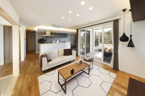 LDKは、ホール・和室・デッキまで目線が通る圧倒的な開放感。