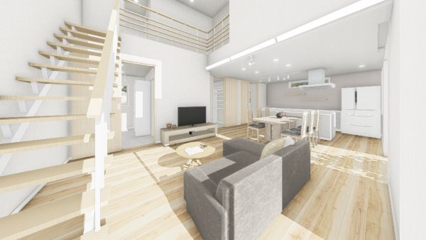 また、LDKに明るい光が降り注ぐように、リビングの吹き抜けに高窓を配置。