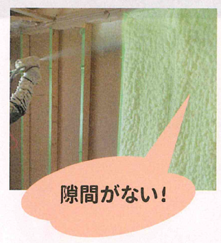 発砲ウレタン吹付け断熱工法で、直接断熱材を吹き付け、隙間なくぴったりと施工できます。