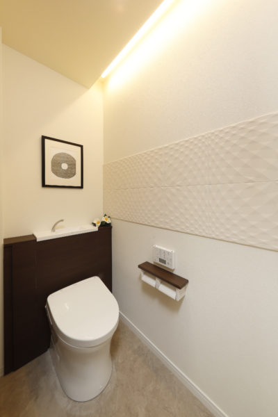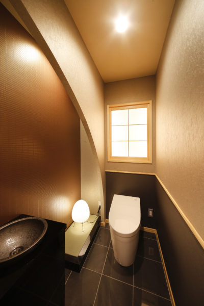 ”四季を奏でる家・日本を愛でる家、和モダンな二階建て住宅「四季ZEN」”のコンセプトに合わせて、お手洗いも和の雰囲気漂う上質な空間を演出しました。