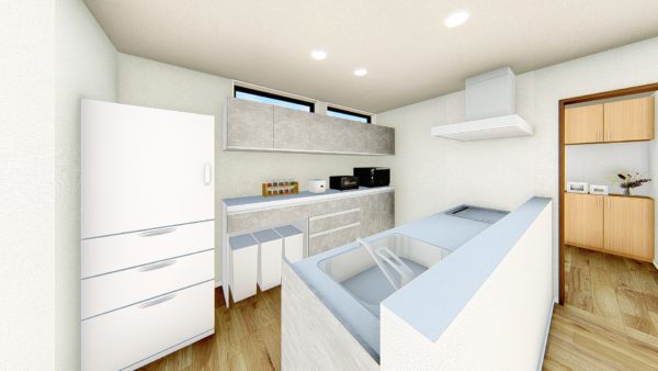 買い物帰りの荷物も収納しやすい、玄関に近い配置の対面キッチン🍽️帰宅した人が必ず前を通るから、「ただいま」「おかえり」の声掛けもしやすくなります🙌