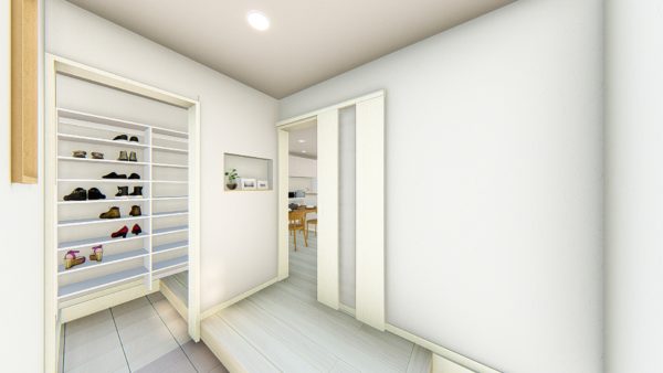 玄関入ってすぐに土間を設けており、自転車やアウトドアグッズ、ガーデニング用品の収納はもちろん、趣味を楽しむスペースにもなります!
