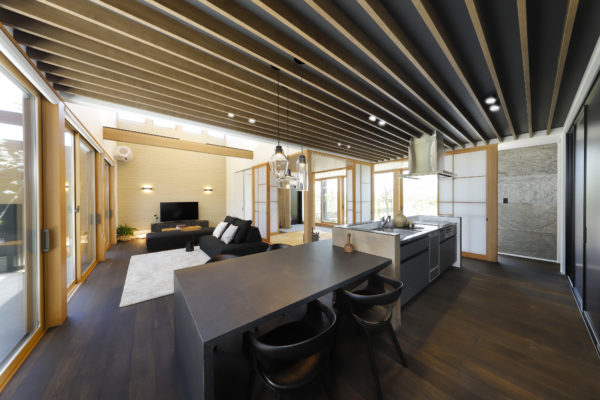 LDKは26帖の大空間!室内は黒をベースに木の温もりを散りばめ、高級料亭のような落ち着きを備えています!