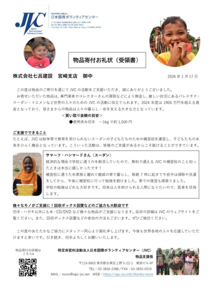 1年間ほどセッセと溜めて、結構な量になりましたので、関係機関にお送りしたところ、先日お礼状が届きました✨