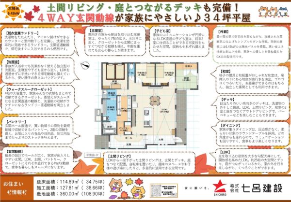 LDK、土間、パントリー、クローゼットにそれぞれ直行できる4WAY玄関動線で家事も暮らしもスムーズになります!