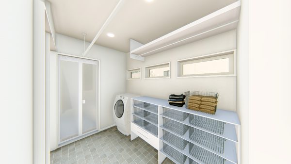 室内物干しを備え、天候を問わずに洗濯を効率的に完結できるランドリー🌀